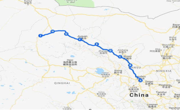 此次騎程主要行經的地區為河西走廊。就位於青藏高原與蒙古高原之間,東起烏鞘嶺,西至甘肅、新疆交界處,地勢從東到西、南向北傾斜,全區海拔高度在1000~1500公尺之間,包括了甘肅西部的主要城市武威、張掖、酒泉、嘉峪關,因位於黃河以西,自古就稱為「河西」,它就像一條天然走廊,直通西域新疆,故名為「河西走廊」或「甘肅走廊」。