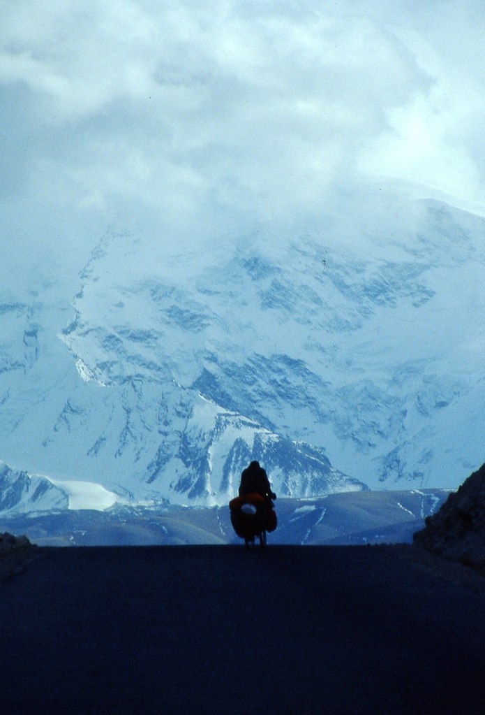 此地氣候嚴寒而不宜久留,才出發,就看到先前通過的一部TOYATA廂型吉普車,從巴基斯坦側回頭,但車頂的板金卻是歪七扭八﹔可能是下坡山路崎嶇、積雪路滑,而不小心翻車,不過還開的回來,車子真是堅固﹔但也提醒我們要注意安全,如自行車衝出公路,可就難保全身了。