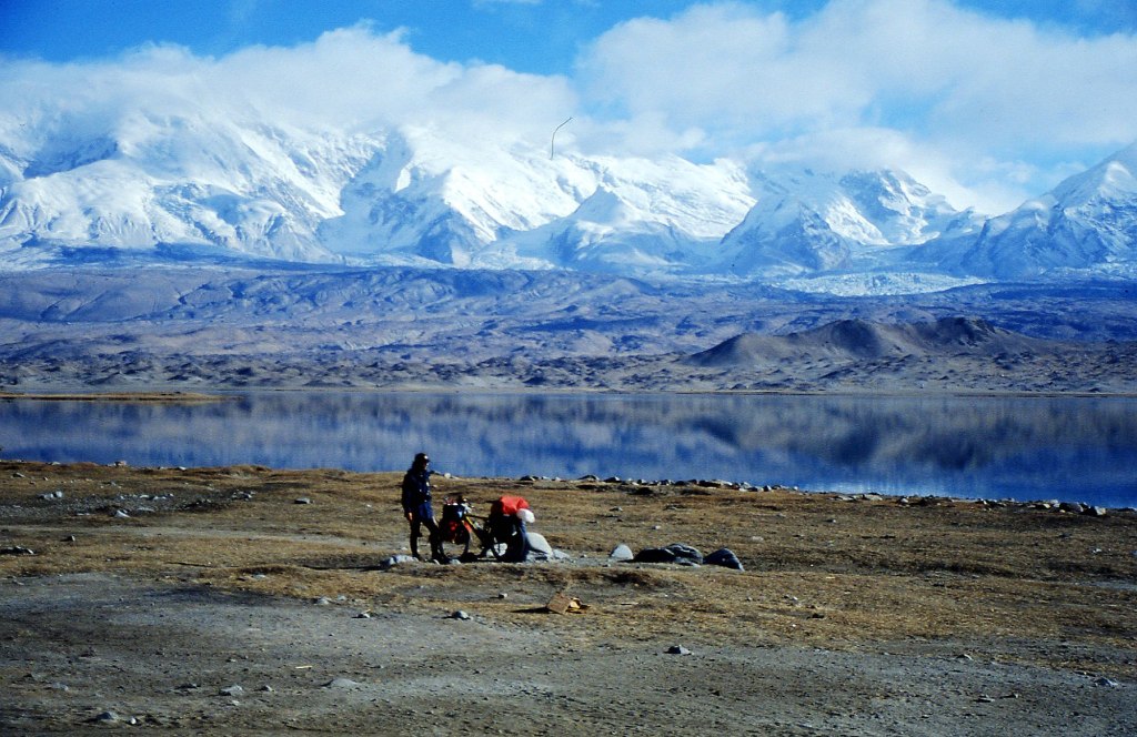 卡拉庫力湖邊在夏季旅遊旺季時,阿克陶縣登山協會有設置一個接待站,當地柯族人也有搭建氈房,提供給旅客、登山健行者住宿。當我們騎自行車下滑至湖邊,原以為今日就此歇腳,但此時湖邊的景象卻是人去樓空,荒蕪無人,不見一頂氈房,只剩下大門上鎖,無人管理的接待站。只有繼續往前騎,看看前面有沒有村落或是道班可借宿。