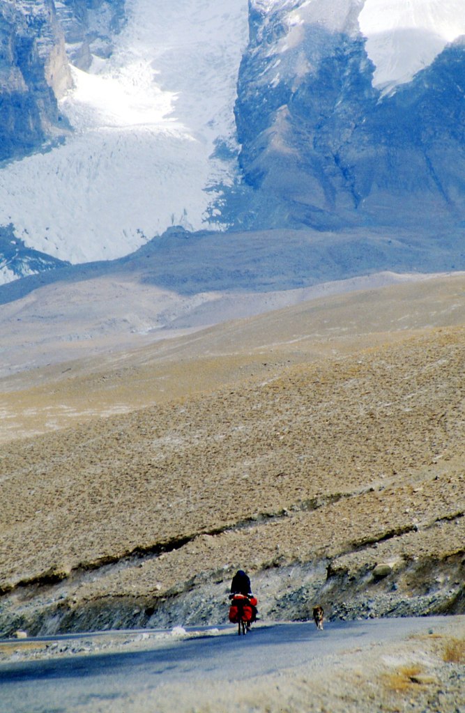 中巴公路沿著紅其拉甫河谷,似巨龍般穿進喀喇崑崙的重重群山中,從紅其拉甫山口到巴基斯坦口岸蘇士特的86km路程,大部份是下坡路段;我手上的資料與地圖顯示路上並無村落,所以預計趕到蘇士特才能落腳。