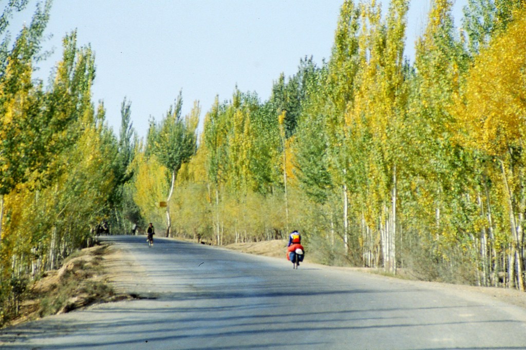 城後,公路上的車流量開始變得少些﹔主因是314國道的中巴公路沿線人煙稀少、物產資源有限、外人進入還要申請邊防通行証﹔因此行駛路上的只有一些搭載遊客的旅遊車輛,當地中小型客運巴士、貨車,及每天幾輛出境至巴基斯坦的大貨櫃車。如此少的交通流量,可看到當地居民,逍遙的坐躺在樹蔭下的路面,休息聊天,完全不用理會車輛威脅。