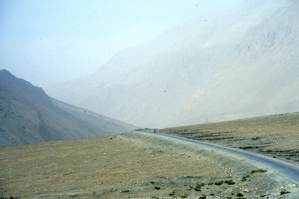 騎上單車離開Dih後,思緒漸趨清楚,開始有點後悔,為何沒有決定在Dih落腳。阿B自紅其拉甫山口下山後,就一路狂飆,我則在後匆忙追趕,希望能早點到達蘇士特,思緒就被這種趕路的想法帶領著,做出不在Dih落腳的錯誤決定。隨著夕陽的下山,馬錶的失靈而無法準確評估里程,看來天黑前是不可能騎抵蘇士特了,進入巴基斯坦的第一天又得趕夜路,讓自己陷入未知的危險環境中!
