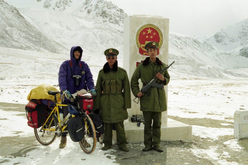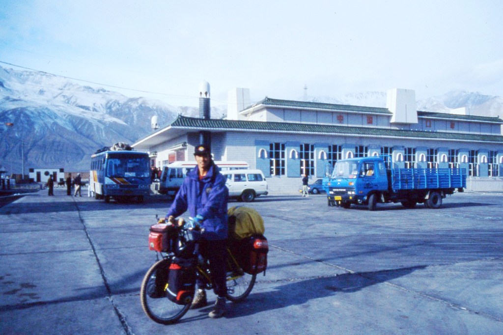 能在中國最西邊的邊疆高原口岸,意外的聽到廣東鄉音,阿B與關員都倍感親切﹔關員得知我們預計騎自行車環球後,除了讓行李不用拆卸經X光機檢查外,還請我們簽名留地址,並預祝我們一路平安環球成功。經海關檢查與辦理出境手續,離開塔什庫爾干新口岸往中國巴基斯坦國境通口─紅其拉甫山口前進。