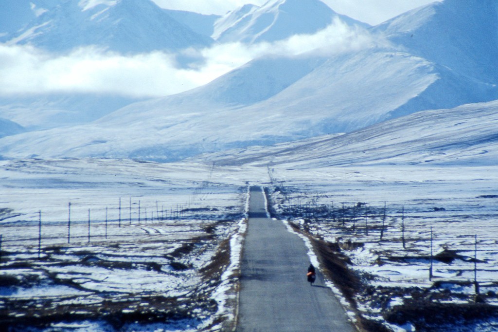 此時的天氣變得更糟,風勢轉強且又寒又凍,公路旁的湖面結凍成冰,天地間是一片寂寥寒凍的北國景致,只有將所有的禦寒衣物穿上,才能迎面抵禦寒風。看到偶爾行經的汽車,讓人更羨慕起車內的乘客,能在密閉的空間中,不用與寒風搏鬥;而車上馬錶也早已凍得失靈了,缺少里程的資訊,行程與心理狀態又將變得無法掌握了!