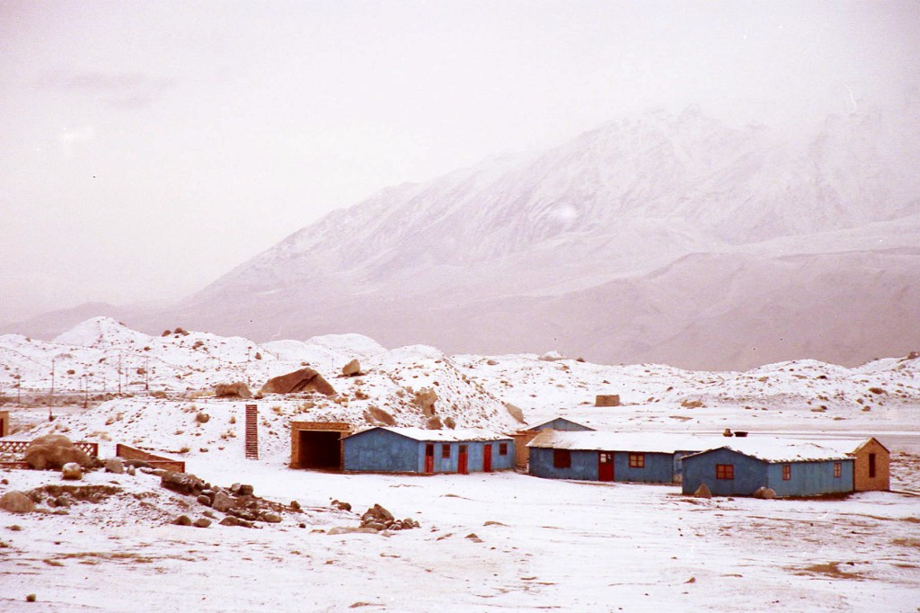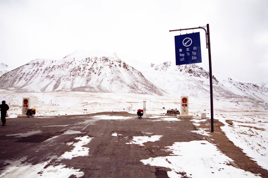 一路雖不見前哨班,但也應該不遠了,高度繼續爬升,公路兩旁的山坡早已蓋滿了白雪,部分路面出現積雪結冰的現象,騎在雪地上也是滿有趣的經驗;轉了個彎終於看到位於山坳處的前哨班,前哨班海拔4500多公尺,這裡是中巴公路中國段的最後一個檢查站,來往旅客需檢查護照、台胞證與巴基斯坦簽証,經登記後才准過關。在驗証時天氣又開始變壞,刮起寒風,而烏雲更密佈在前方的紅其拉甫山口,趕緊全付武裝準備挑戰山口。