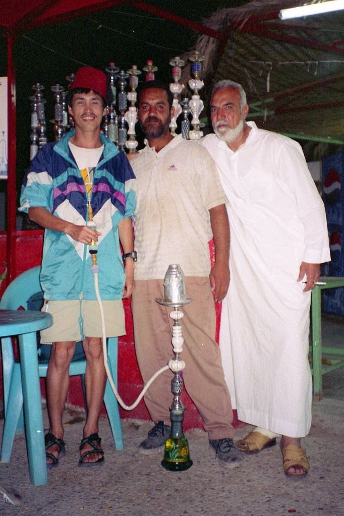 走在海邊步道,循著夕陽足跡,在前方有一對帶著小朋友的東方夫婦,竟然講中文。進入埃及後,就沒遇到過同胞了,沒想到能在約旦阿卡巴這種地方碰到,除了能用中文聊天,也能排除一些獨行的孤寂。李學政住在安曼,趁著假期帶著老婆小孩來阿卡巴渡假,因此也特別留下安曼的電話,吩咐在我騎抵安曼時,一定要與他聯絡。