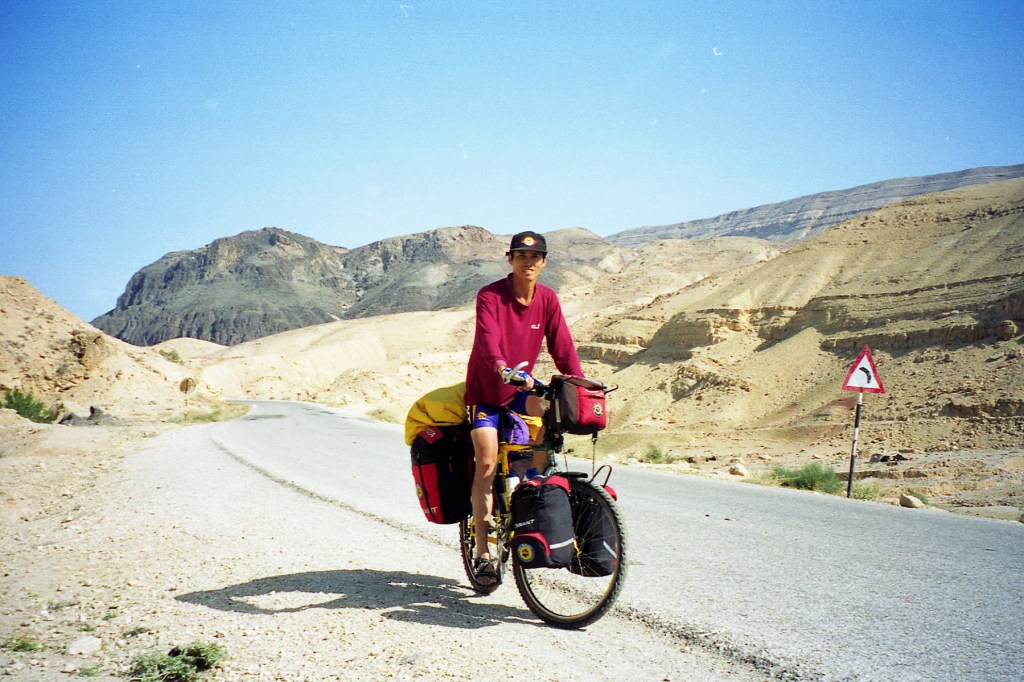 「從安曼一路過來,大部分是山路,有些荒漠地形,氣候炎熱。」從李學政那裡打聽到一些路況。至於行經路線的海拔高度與公路起伏路況,是完全不清楚。在僅有的簡單旅行資料下,4月26日一早六點,為避開荒漠上的炎熱氣溫,旅館工作人員一開門,我就跨上雪豹,離開才慢慢甦醒的阿卡巴市區,騎上約旦之路。