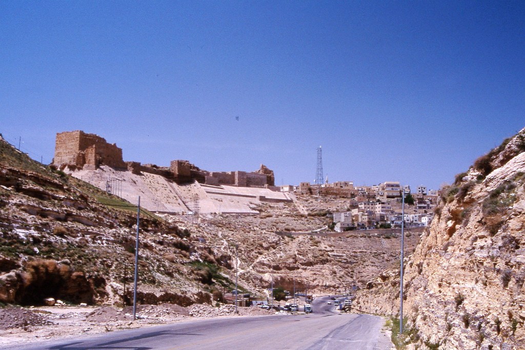 看到公路上方的城堡,就知道已騎抵克拉客Karak,克拉客位於Tafial北方65公里,曾是古代商旅從埃及往敘利亞貿易的必經之路,鎮內因山丘上遺留了一座十字軍東征時期建設的城堡,而成為觀光旅遊點﹔從公路還要一段上坡後,騎進克拉克鎮內找旅館住宿。