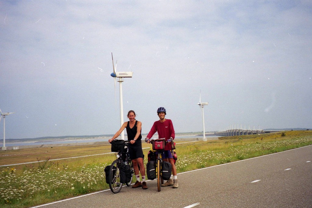 從Sluis沿著1號單車路線往北騎到Breskens,將單車牽上渡輪,渡海灣到對岸的Vlissingen,又是單車搭船的另一種體驗。經Middelburg到半島北岸的Breezad後,沿著海濱往東北騎5公里,就會越過一段長海堤及水閘,荷蘭人引以為傲的與海爭地,就是這樣慢慢的建構出來。海堤上除了有公路可通行汽車外,旁邊並設有單車專用道,可輕鬆的來往;而一些現代風車也點綴在旁,轉動著巨大的風葉,製造無污染的能源。