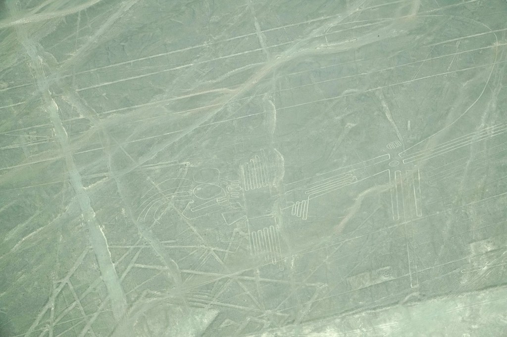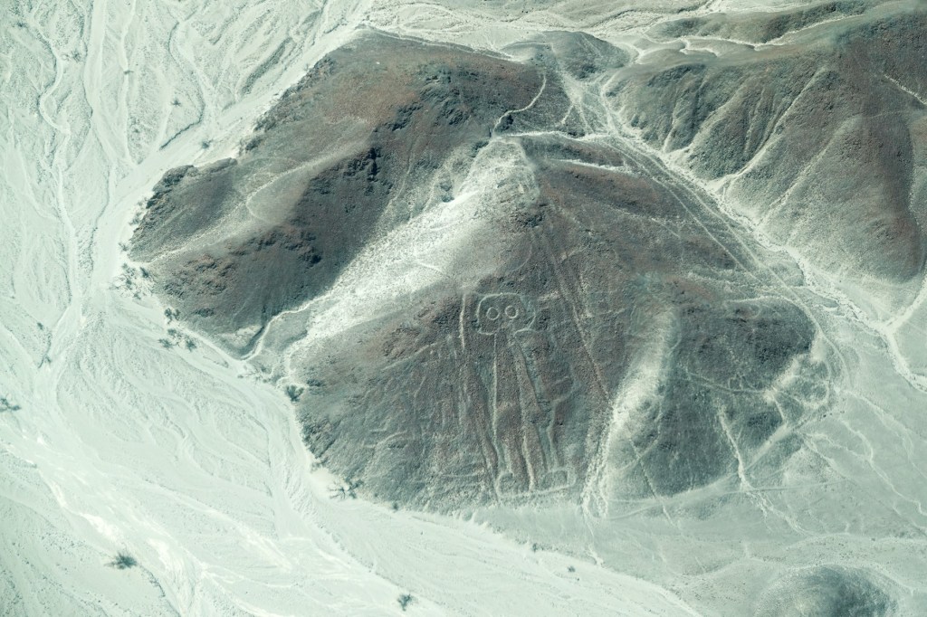 由於圖案十分巨大,只能在三百米以上的高空,才能看到圖案的全貌,所以一般人在處於地面的水準角度上,只能見到一條條不規則的坑紋,根本無法得知這些不規則的線條,所呈現的竟是一幅幅巨大的圖案。
