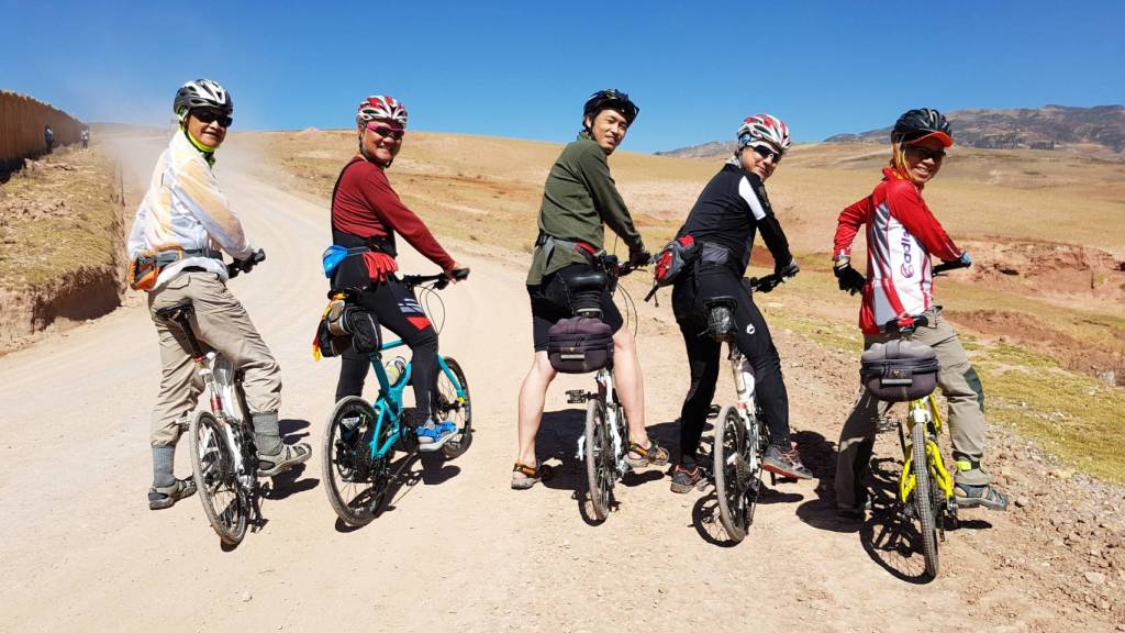 探訪過馬拉斯鹽田後,環球騎行隊伍騎車從馬拉斯小鎮來到莫雷梯田。