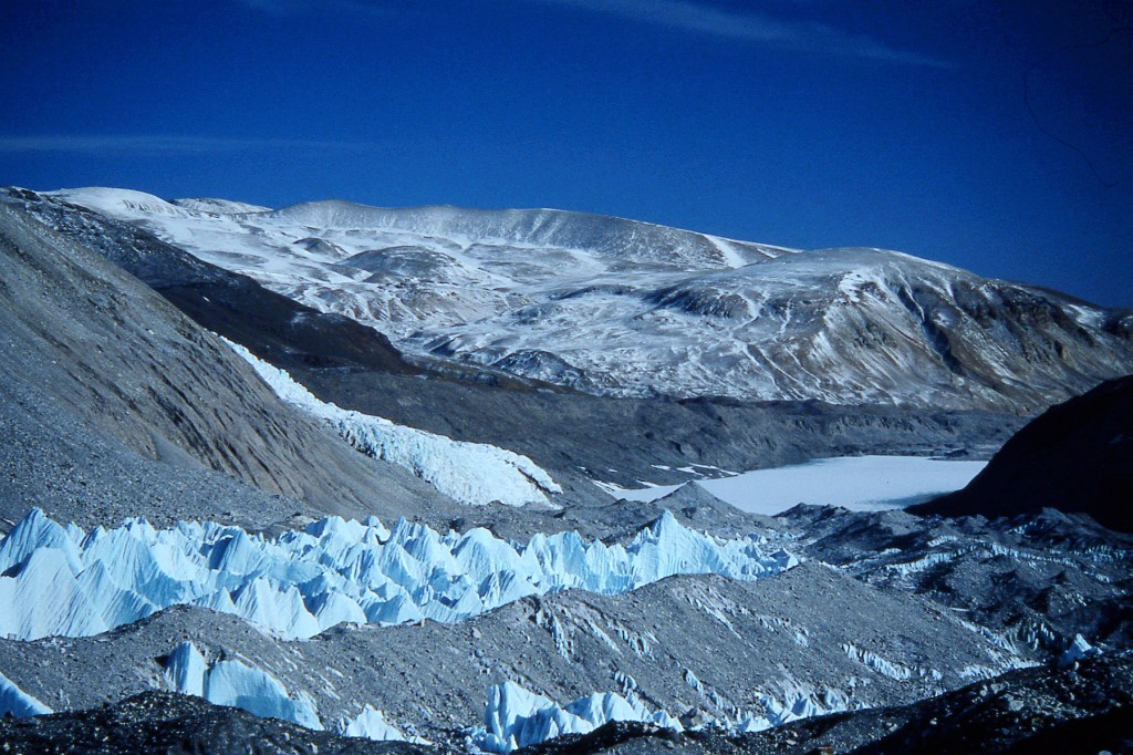 自己一個人走路,還是舒坦沒壓力些,但卻要留意路跡才能避免迷路;隨著海拔高度的升高,步徑開始沿著冰河旁的山坡前進,行經一個小台地,有3個西藏年輕人,正坐在地上聊天,點個頭打聲招呼後,續往前行,但此時卻找不到往後的路徑,就回頭詢問藏族年輕人,但循著其指引的方向,找了一圈,依舊不見路跡,此時心裏開始有些不安,硬著頭皮再回到藏族年輕人旁邊,詳細詢問;3個不會說漢語的藏族,此時卻說出英文字Money,並指著我的腰包,突來的話語,讓我不知到底是何意思?善意或惡意,在此無人的高山之中,已難以判斷,明哲保身之道,既然去時無路,只有回頭脫離險境,當下決定往回走,並留意他們是否也尾隨而下。