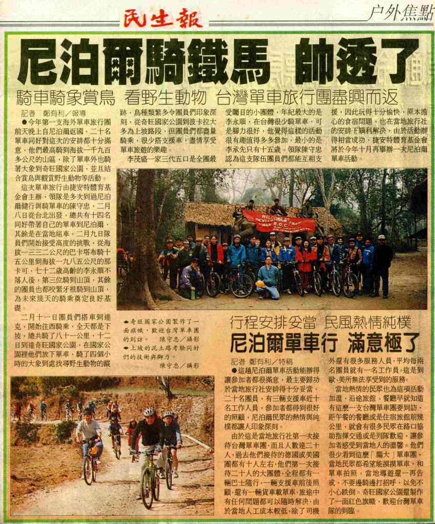 1997-02-20民生報-尼泊爾騎鐵馬,帥透了!騎車騎象賞鳥,看野生動物,台灣單車旅行團盡興而返: