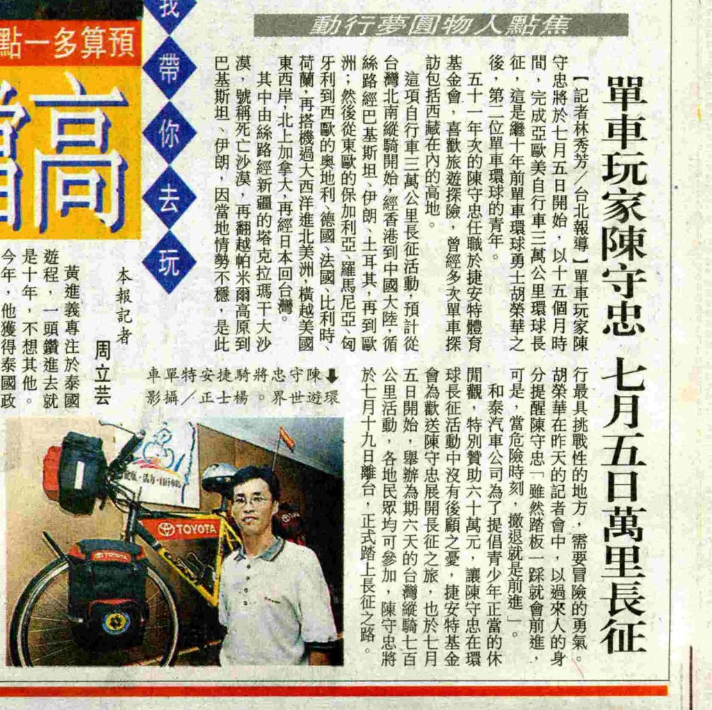 1998-06-30工商時報- 陳守忠自行車三萬公里長征,和泰贊助,鼓勵青少年從事健康休閒活動 :