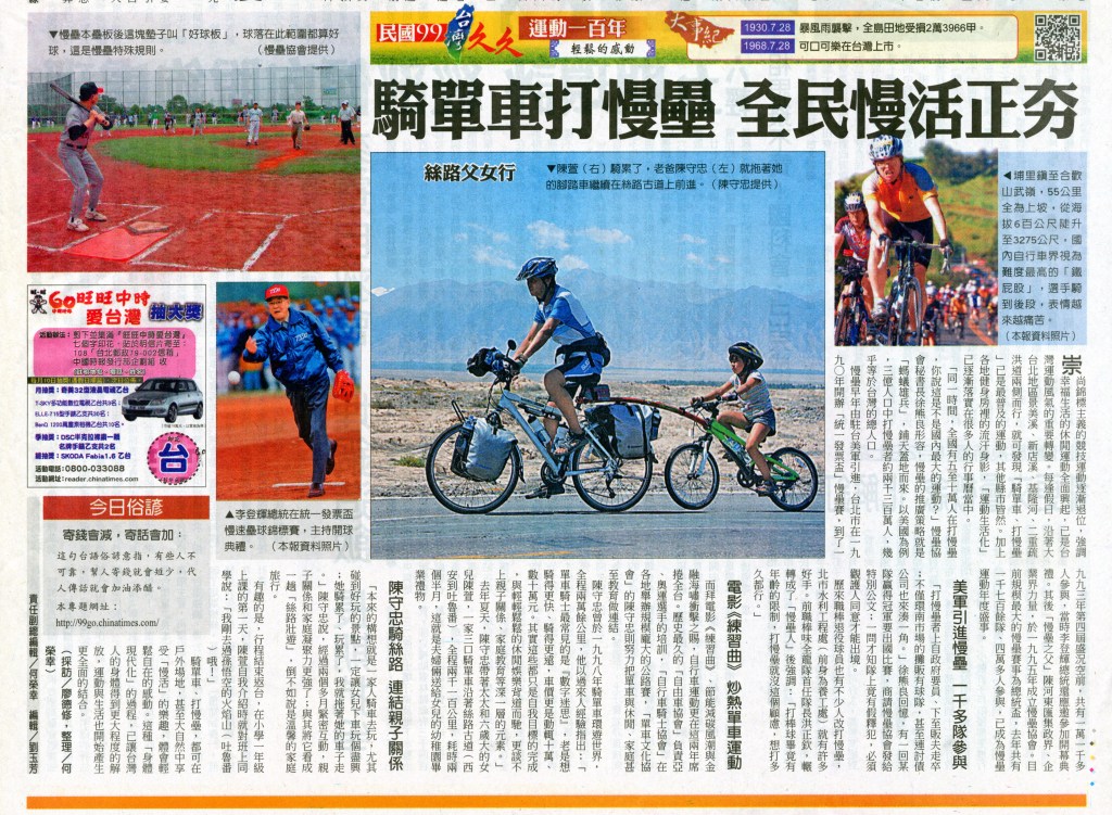 2010-07-28-中國時報- 騎單車打慢壘 全民慢活正夯-民國99 台灣久久 運動一百年: