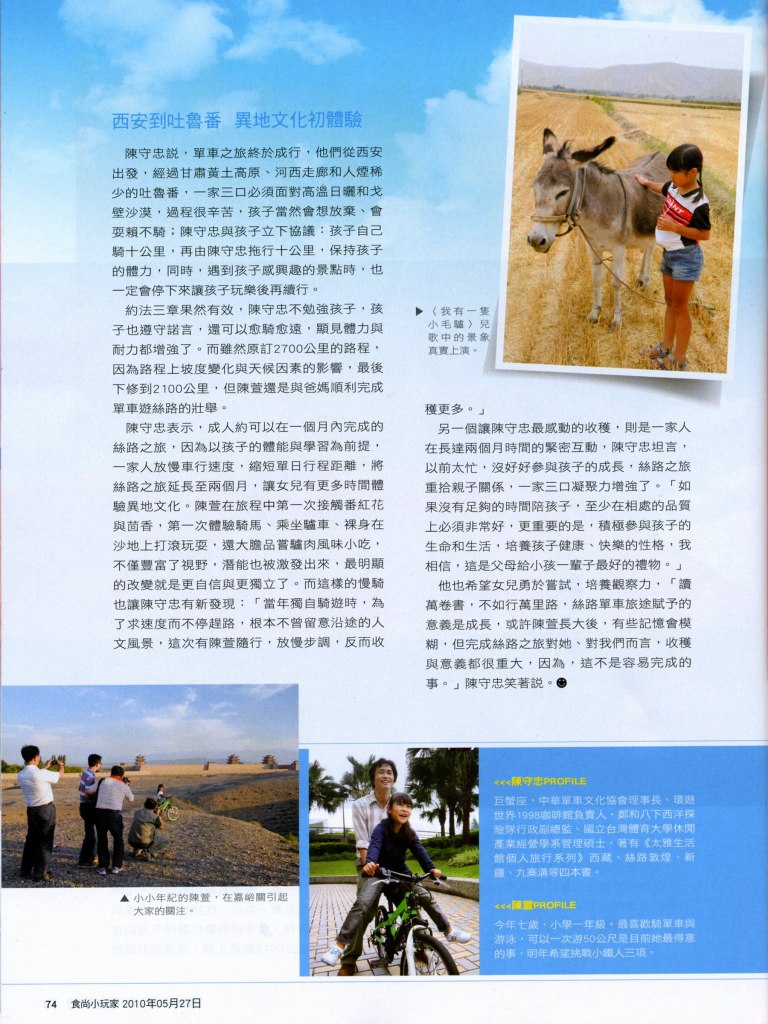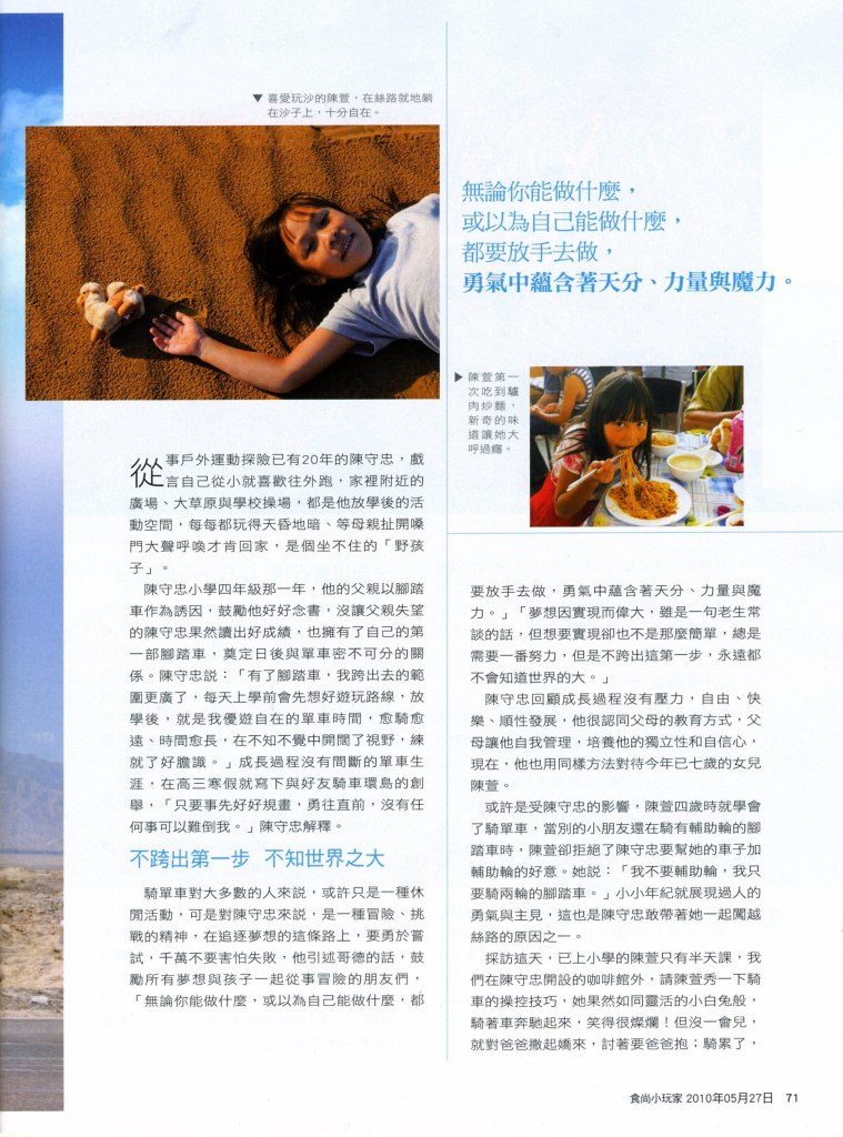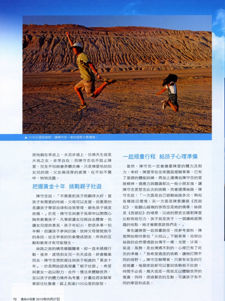 2010-05-27-時尚小玩家雜誌- 陳守忠用挑戰,開啟她的視野,陪6歲女兒勇騎絲路: