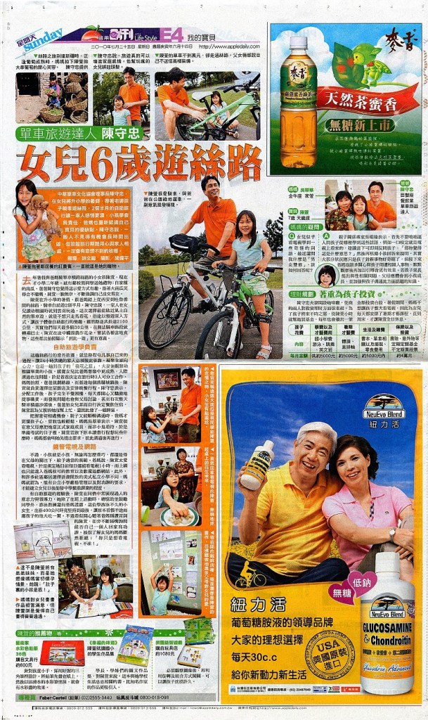 2010-07-25-蘋果日報- 單車旅遊達人陳守忠 6歲女兒遊絲路: