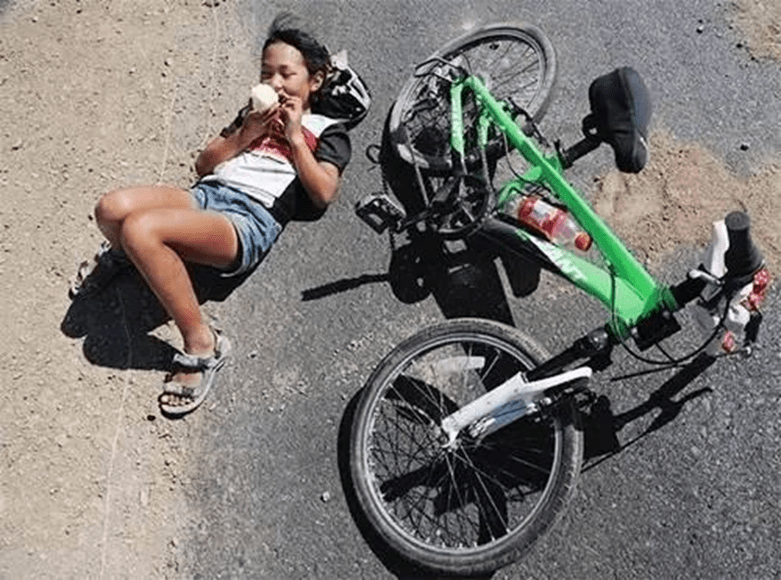 對於陳守忠而言,這趟旅行也並不一般。儘管他騎行探險的經驗十分豐富,帶著自己一家三口的旅途,這還是第一次。他決定保持「游」的心態,不再一味地追求速度,一切以萱萱的狀態為準。原本自己可以一天趕100多公里的陳爸爸,和萱萱以每小時10-15公里的速度騎行著,每天一般也只騎50多公里。路上媽媽吳秀華也記錄下了許多寶貴的瞬間。