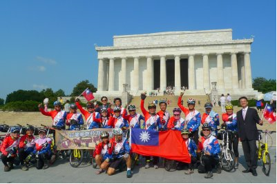 中華單車文化協會舉辦「環球傳騎—分時分段單車環球壯遊—橫越美國段」活動,5日在華府林肯紀念堂開騎,展開39天單車橫跨美國的征程。這支平均年齡60歲的花甲騎士車隊,將一路騎往西雅圖,途經14個州,全程6950公里。在完成美國段騎行後,花甲騎士即將實現單車環球夢想。