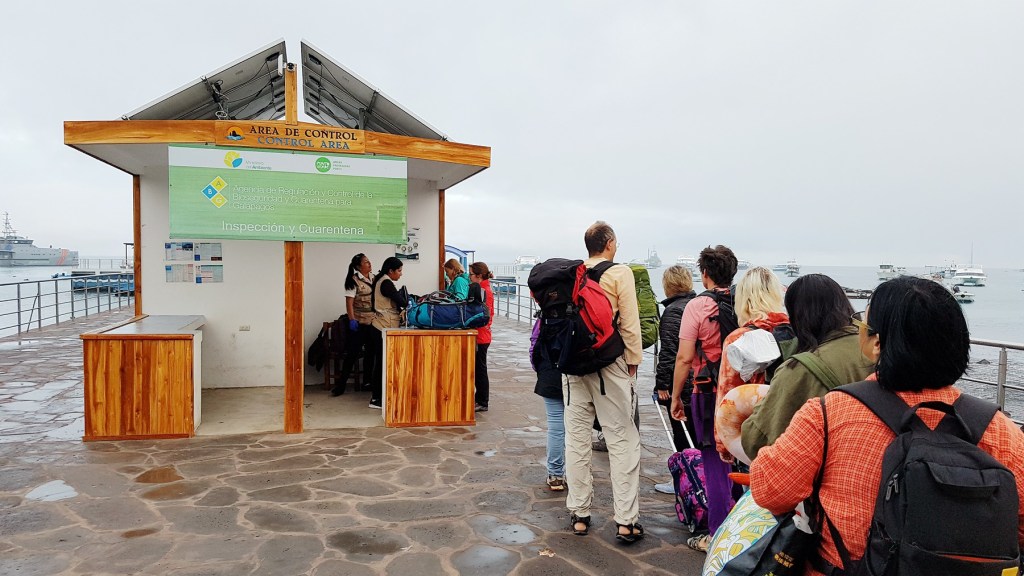 2018年8月20日一大早6:30前往聖克里斯托巴爾島Isla de San Cristóbal碼頭,還要經過行李安檢,主要是檢查有沒有攜帶當地的動植物,甚至鞋子都要看有沒有沾泥土。