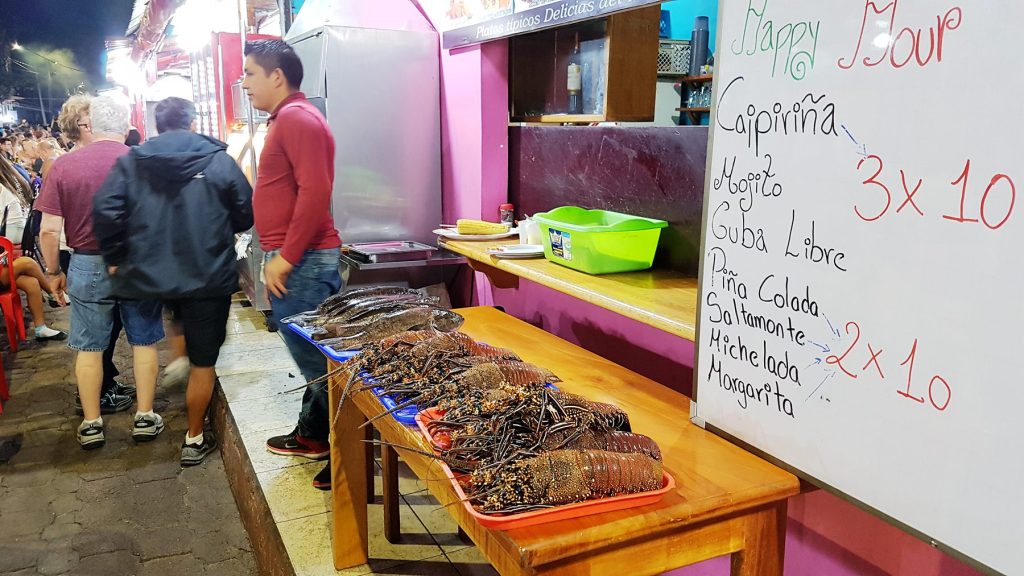 群島除了少數島上生產的蔬果和海產外,物資幾乎都靠外來,島上餐費高昂消費不便宜,最大的超級市場就在阿約拉港旁,這裡也是遊客節省餐費和補充物資的最好地點。 Charles Binford這條路白天很不起眼,到了晚上馬路中央就會擺滿餐桌椅,搖身一變而成了熱鬧滾滾的夜市。