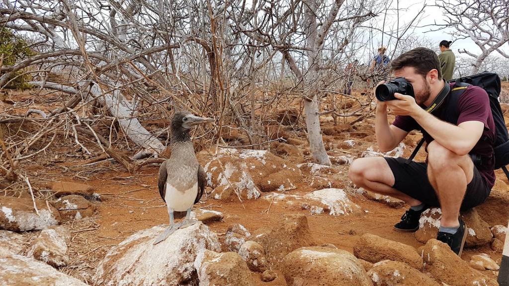 從小島的西南側登陸,沿著步道前行,可觀察沿途的生物,徒步活動行程約會安排1個半小時。這此可以近距離看軍艦鳥,藍腳鰹鳥,陸地蜥蜴。12月是軍艦鳥求偶的最後階段,雄軍艦鳥求偶時鼓起它紅紅的氣囊,非常奇特。