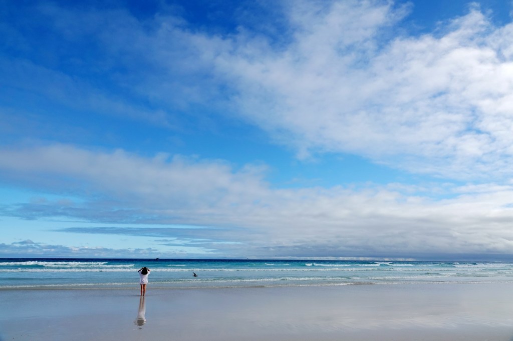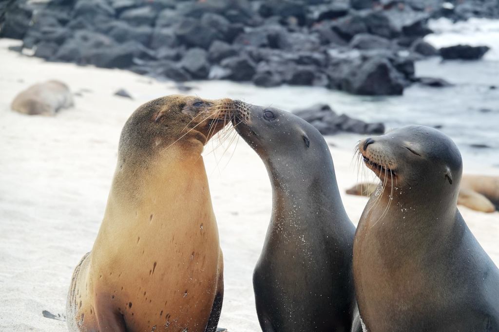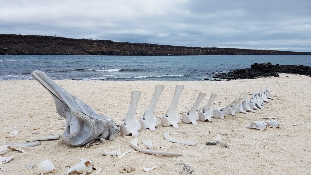 參觀完北西摩島後,續搭船前往島東南邊的Mosquera Island小島浮潛,這裡有一大片兩側是海的白沙灘,許多海獅棲息於此,島南端還有一個鯨魚的骨架。