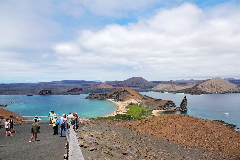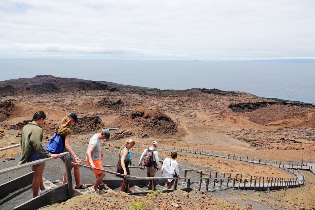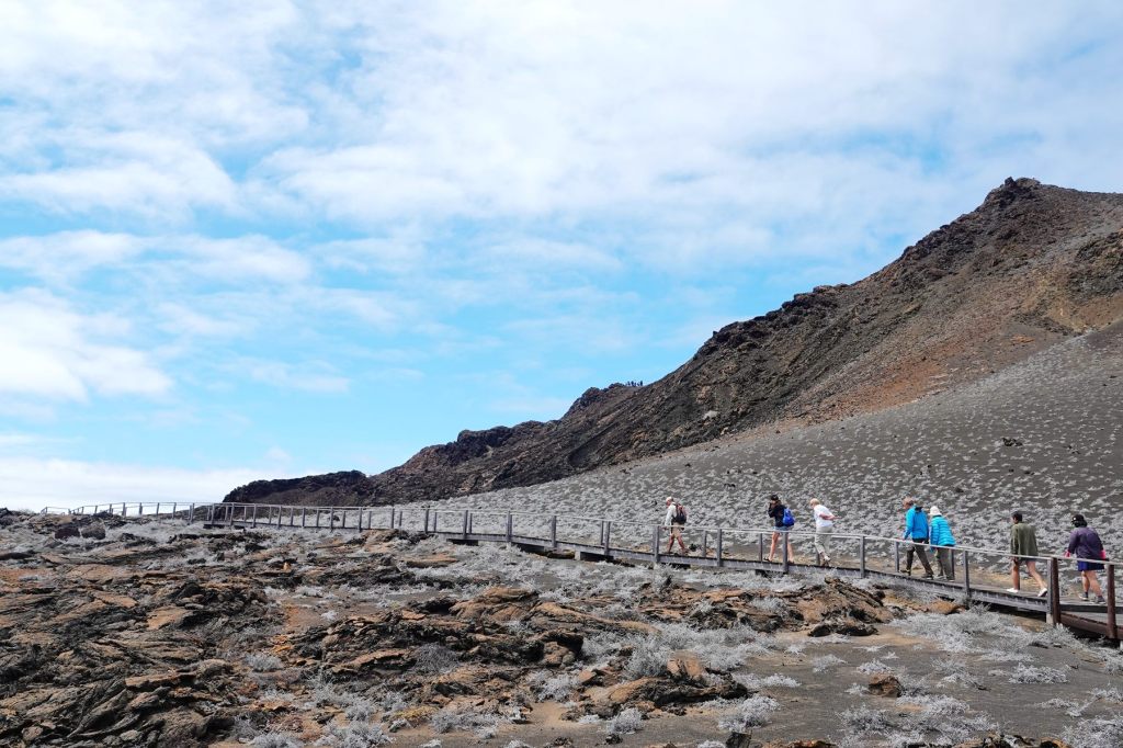 巴托洛梅火山島位於另一大島聖地牙哥島Santiago的東側,之間有一個小峽灣分隔,是來到加拉帕戈斯群島必訪的一座島。全島的面積很小,由一座死火山構成。在橡皮艇的接駁,可從島北側的簡易小碼頭登陸,沿著修築好的600公尺長木棧道走40多分鐘,即可登頂海拔114公尺的山頂觀景台。