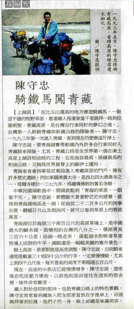 2007-05-01-聯合報- 陳守忠騎鐵馬闖青藏: