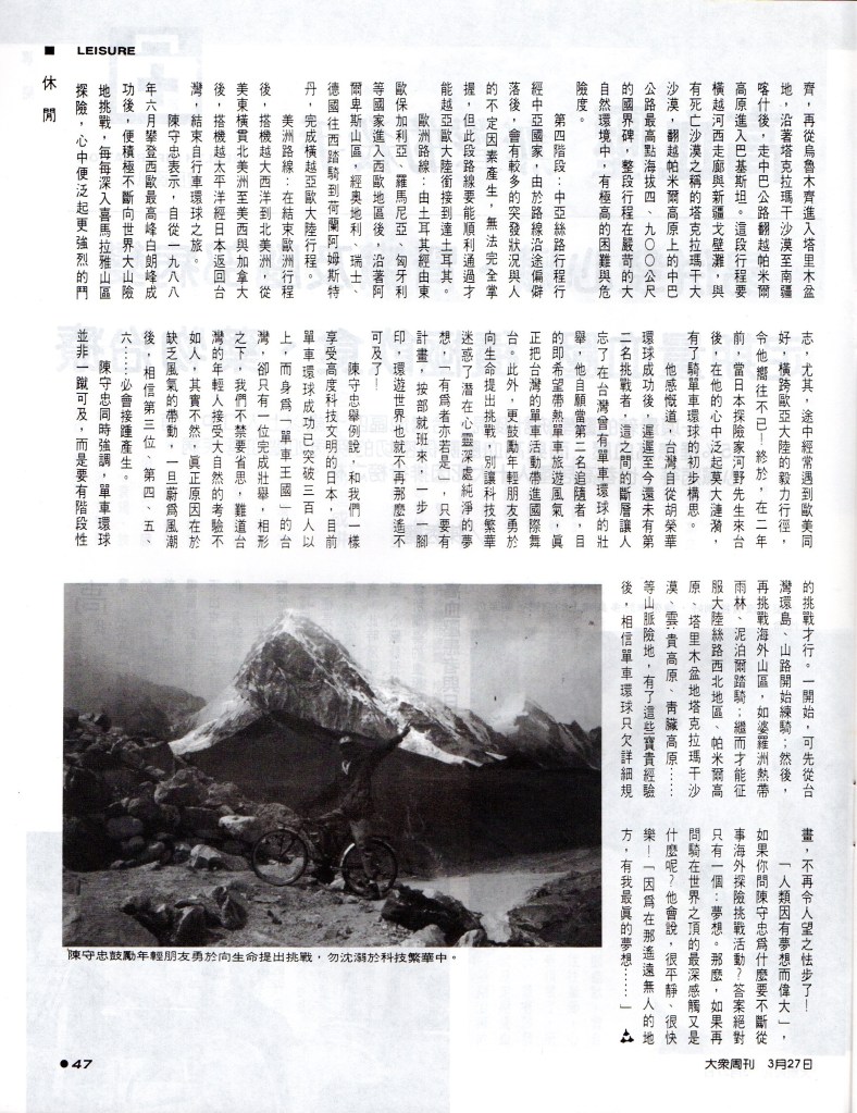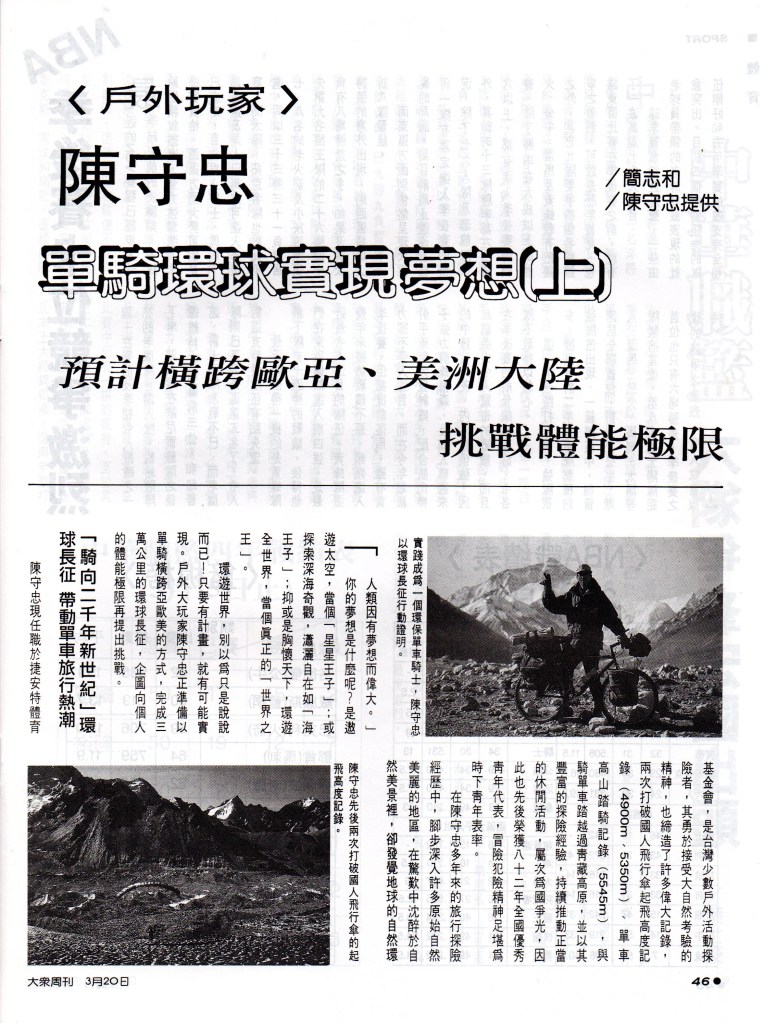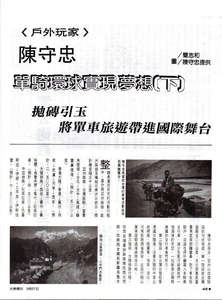 1998-03-20-大眾周刊695期- 陳守忠單騎環球實現夢想: