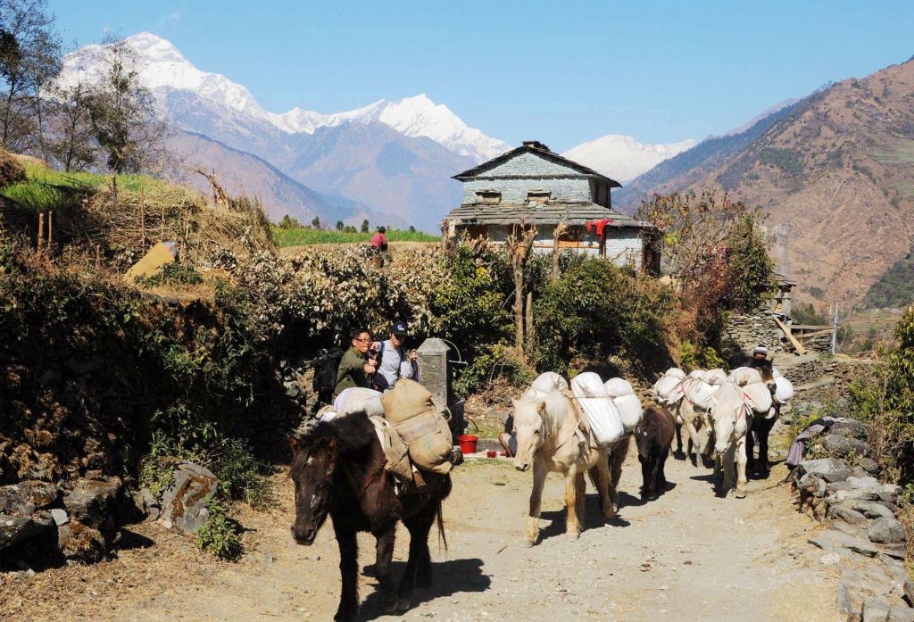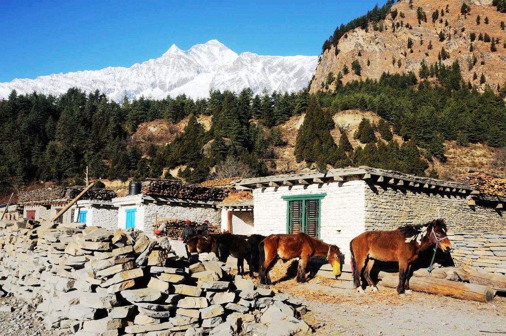 在土石道路路況及天氣的條件許可下,上午沿環安娜普納健行路線,挑戰位於駝龍拉埡口下方,海拔4,126公尺的Chamber Bhu營地。