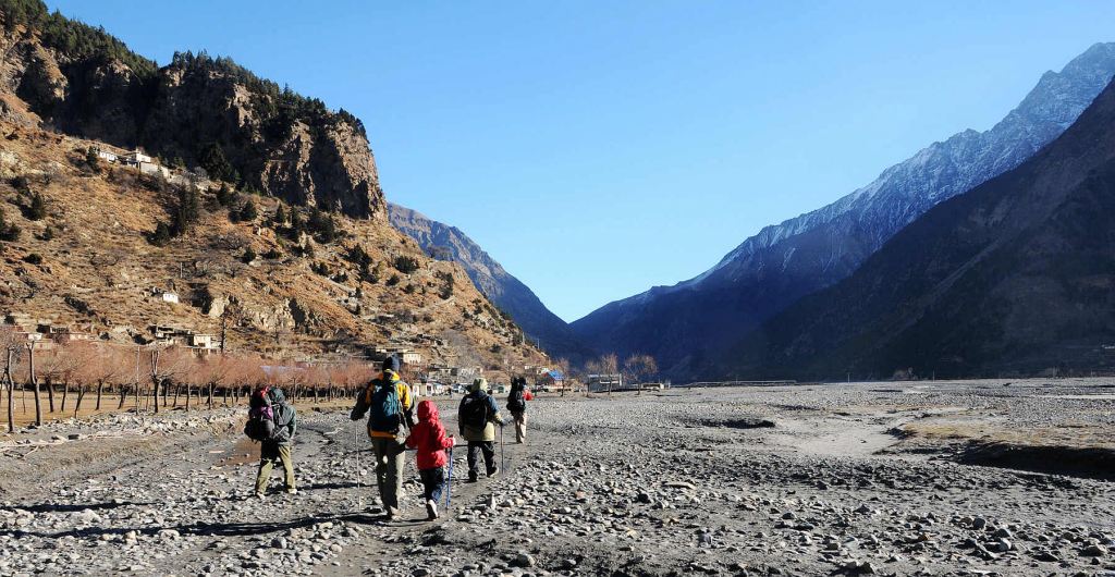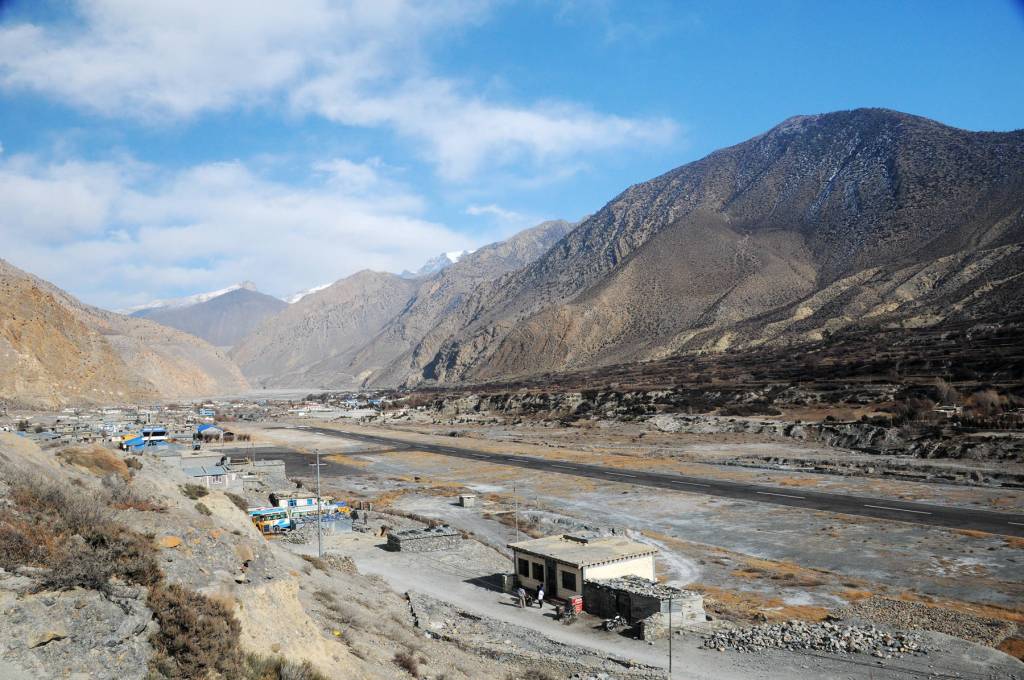 繼續沿著卡利甘達基河谷的土石道路(Off-Road)騎行上溯,沿途可繼續盡覽道拉吉里峰等幾座雄偉雪峰。經甘達基河谷中的重鎮喬姆森後,Off-Road更為崎嶇,坡度更大,繼續爬升到環安娜普納健行路線中的高山小村穆克蒂納斯。