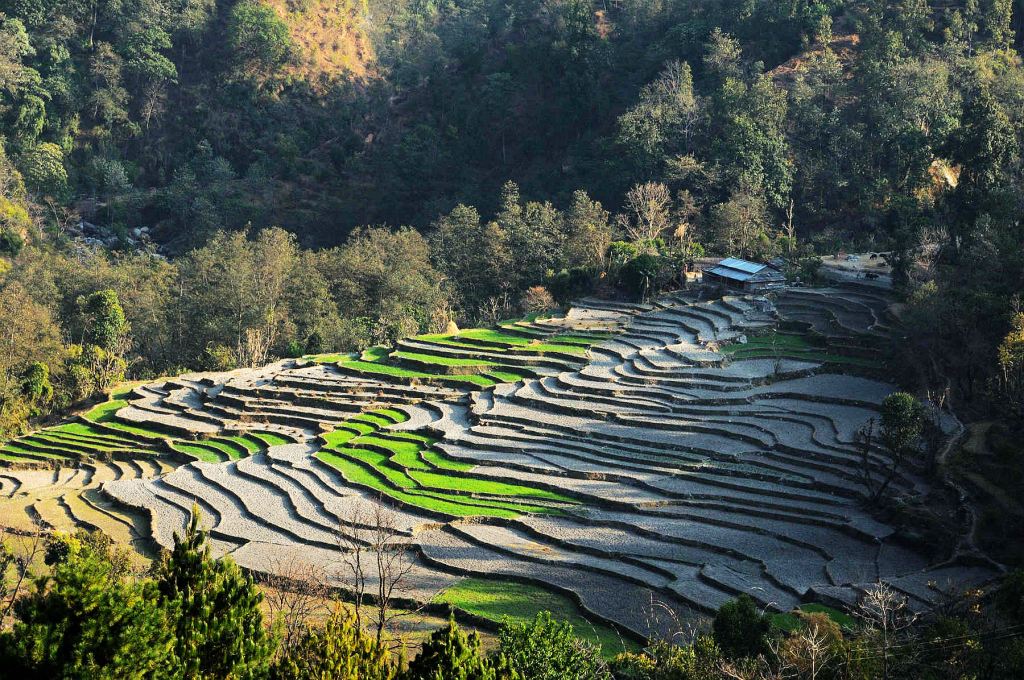 由於距離喜馬拉雅雪峰很近,離安娜普納山系的魚尾峰海拔6993公尺,直線距離約60公里,在這那麼短的距離中,海拔一下子拉高到相差6000公尺的高度,可稱為世界地理上特殊且唯一的景觀。