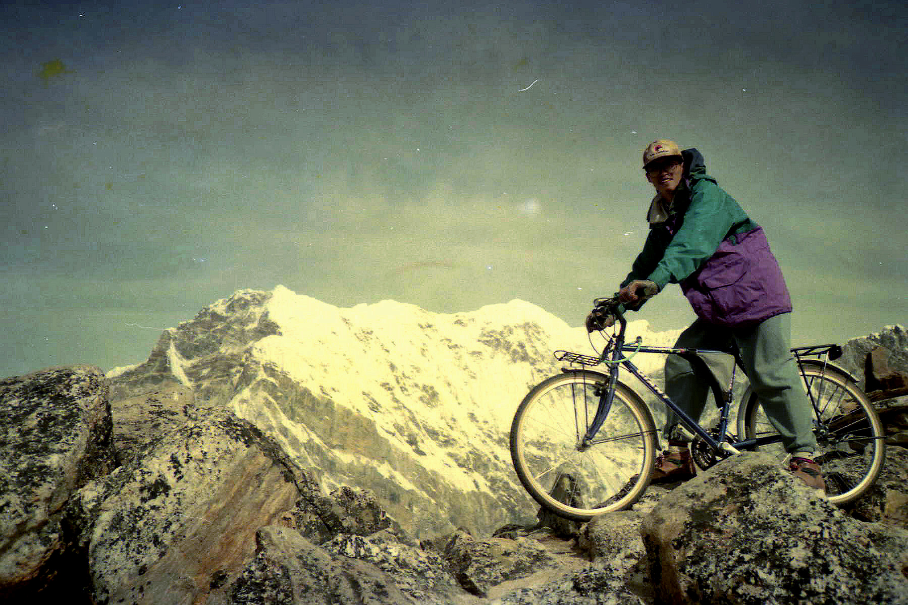 4月23日清晨6點半出發,此行自行車目標卡拉巴塔山就在前方;經過2個多小時的路程後,上午8點半,帶著自行車捷豹,登上海拔5,545公尺的卡拉巴塔山頂;聖母峰的雄姿,在初升的太陽照耀下,雄偉壯觀,這一路的艱辛也隨著登頂成功而忘卻。