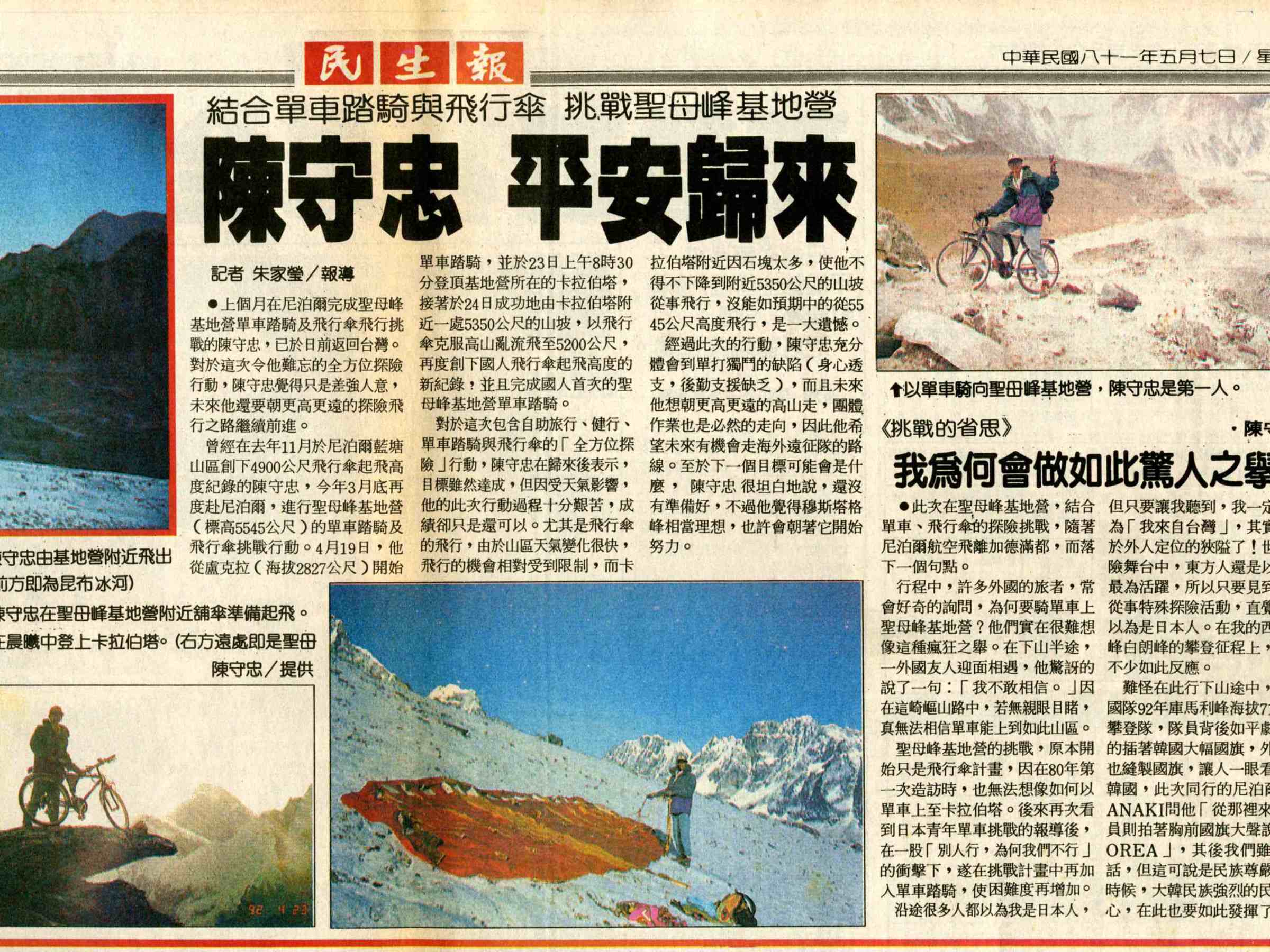 1993年3月底,到了出發時刻;恰巧在這一段時間,國人探險隊伍也一波波的出發或正在進行中,上山、下海、橫越大地,紛紛向極限挑戰。活動有兩岸珠峰聯攀隊、卓奧友峰遠征隊、寶島號帆船環球航行、胡榮華單車穿越歐亞非、踏越世界屋脊單車活動等,證明了當時的國人在探險活動的實力。