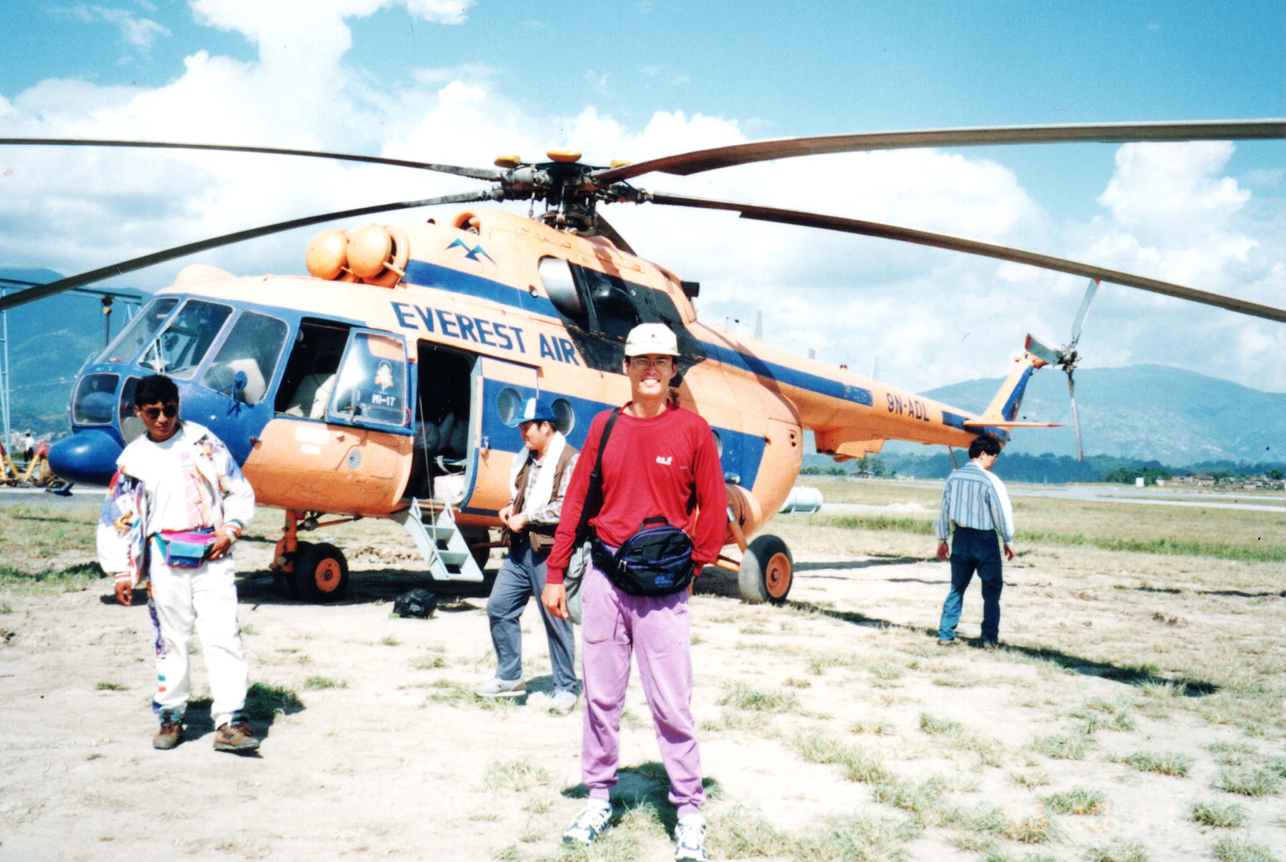 1992年4月14日清晨,在加德滿都國內機場,Hillary旅行社的尼泊爾友人Janaki經一番交涉,將我們要搭乘到盧克拉的班機,從第4班提前到第2班,並將我的自行車捷豹,交由直升機託運;解決到盧克拉的人員及裝備運載問題後,蓄勢待發,準備征程的開始。