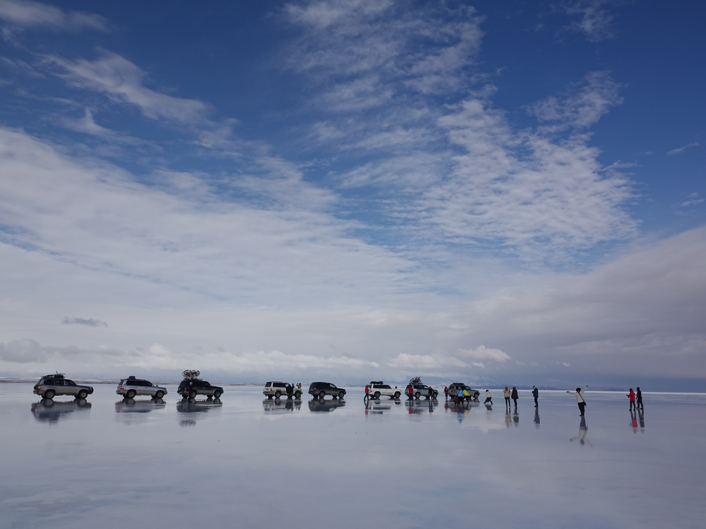 通過祕魯和玻利維亞邊境,前往玻利維亞的世界遺產–蒂瓦納科文化的精神和政治中心;世界上海拔最高的首都–拉巴斯;玻利維亞民俗文化之都的奧魯羅;世界上面積最大的鹽層覆蓋荒原,有天空之鏡美稱的玻利維亞烏尤尼鹽沼,享受在白色鹽地上馳騁的特殊騎行經歷,及搭乘4 X 4越野吉普車漫遊在鹽沼裡,尋找能形成天空之鏡的奇景區域,並在此結束單車騎行。