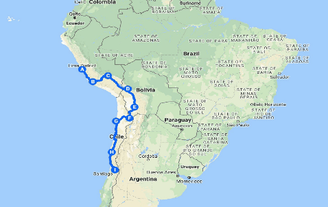 Route-1 秘魯利馬-智利/聖地亞哥16天