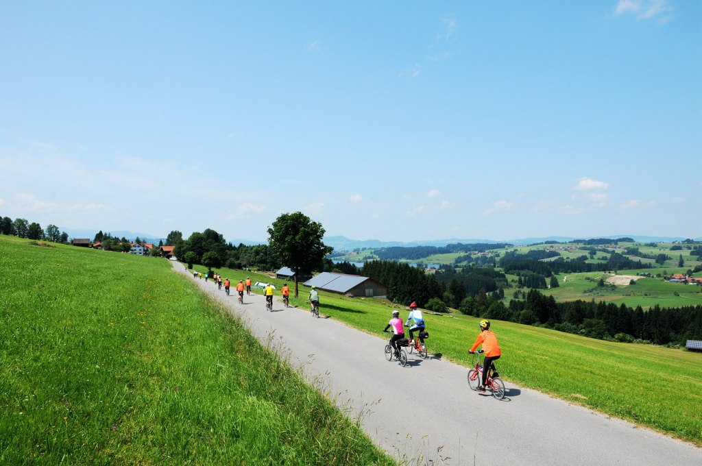 上午搭乘登山火車和纜車前往楚格峰山頂遊覽,離開加米許‧帕騰希爾基,經洛可可式建築,被稱為「巴伐利亞草原奇蹟」的世界遺產-威斯教堂,再前往位於阿爾卑斯山腳下,羅曼蒂克大道南邊的終點城市-福森,大名鼎鼎的新天鵝堡就在郊區。沿途安排單車行。