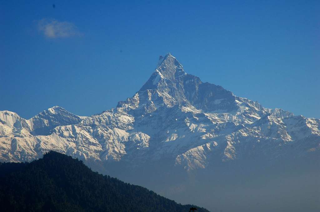 魚尾峰又名馬查普查雷峰,尼泊爾語為"魚尾"之意,是波卡拉地區最有名的山峰,也可說是尼泊爾的地標。距離波卡拉25公里,海拔高度6,993公尺,目前尚未有人登頂。第一個離峰頂最近的英國團隊,在山頂前的150公尺,因尊敬當地尼泊爾人的信仰而未登頂。